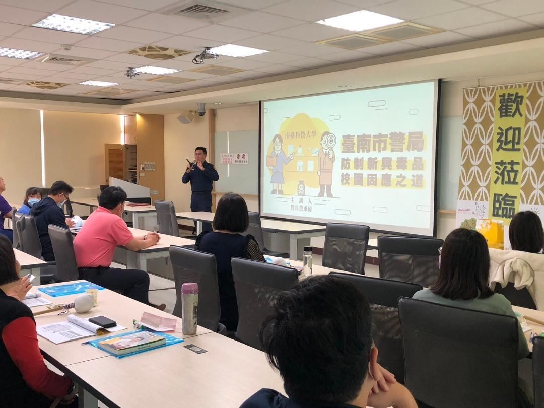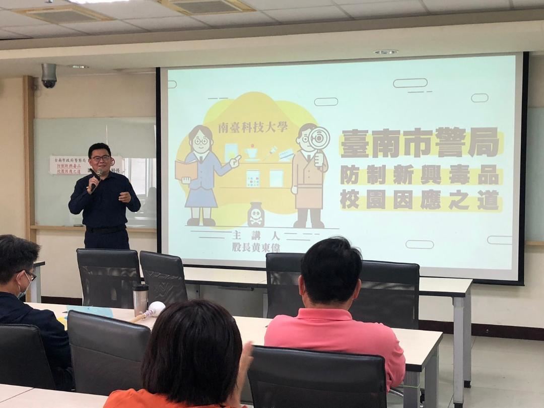 【記者尤華恩/台南報導】為將反毒觀念向下扎根,避免青少年藥物濫用,貫徹市長黃偉哲「無毒大臺南」理念,臺南市政府警察局受邀至南臺科技大學,向學校教職員進行反毒研習課程,更新並強化校園守門員新興毒品專業知識與辨識力,藉此健全社區校園友善通報網,以便及早發現、通報並解決毒品問題。