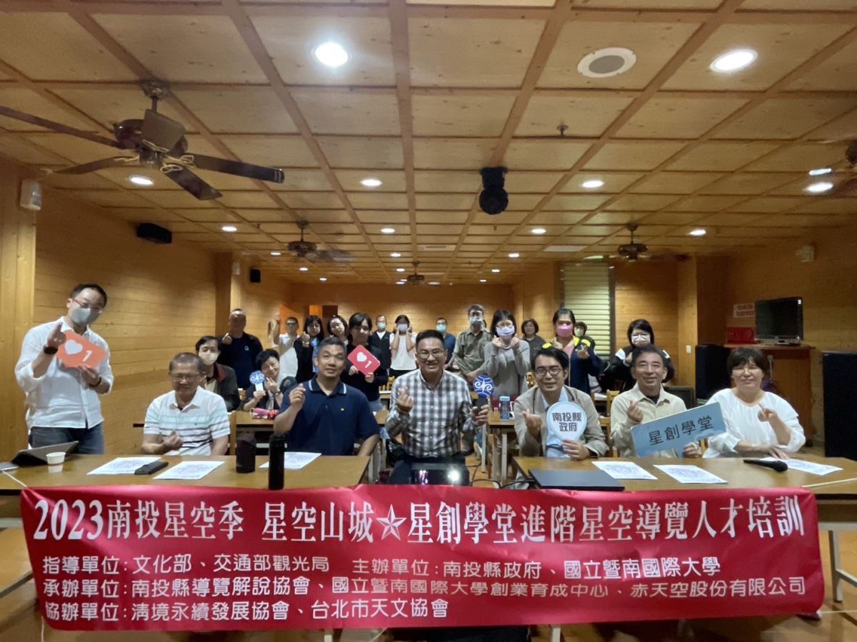南投星空季自去年入選台灣觀光雙年曆活動後,已成南投縣年度重點活動,夏季觀星更是南投四季旅遊的特色項目。為培力在地星空解說導覽及接待能力,南投縣府5月2日於鹿谷鄉金台灣山莊舉辦第二梯次,鹿谷溪頭地區及合歡山清境、杉林溪、日月潭以及猴探井同為南投五大觀星據點,本次導覽人才培訓課程與南投縣民宿協會等在地單位合作,期望能厚植在地解說能量。