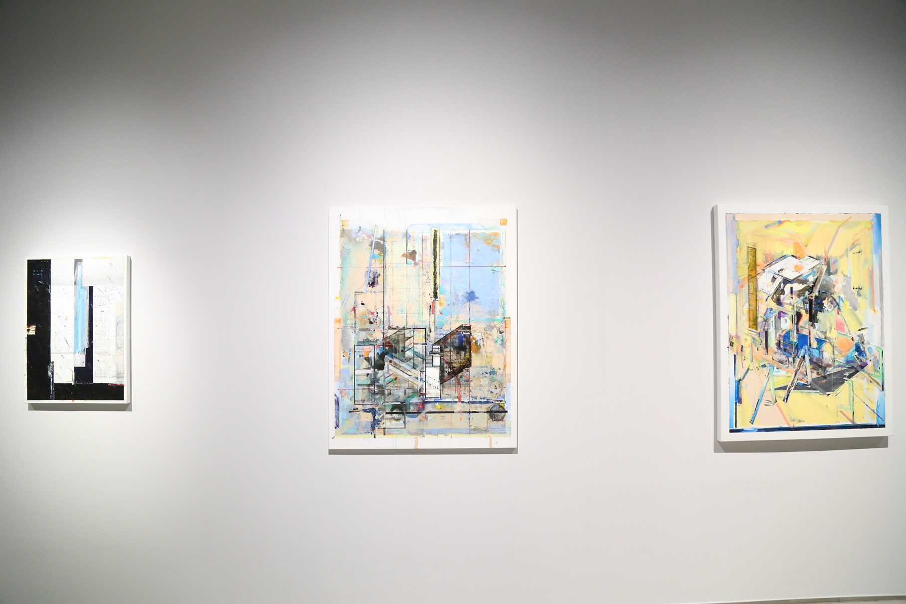 嘉美館表示,一樓展區子題「線縷游」,從方慶綿山岳寫真路徑與視線,連結伐木鐵道、運輸纜線的延展,塑造自然地景中存在的各種「線」;蘇旺伸、陳建榮及蘇誼亭3位當代藝術家的繪畫作品,在某種程度上,皆利用線條交織出虛實空間、城市景觀記憶等日常生活中所見,以及思緒感受轉化為繪畫表現。此展區,試圖以織纏線縷的思想線索,探討線的狀態以延伸更多可能。