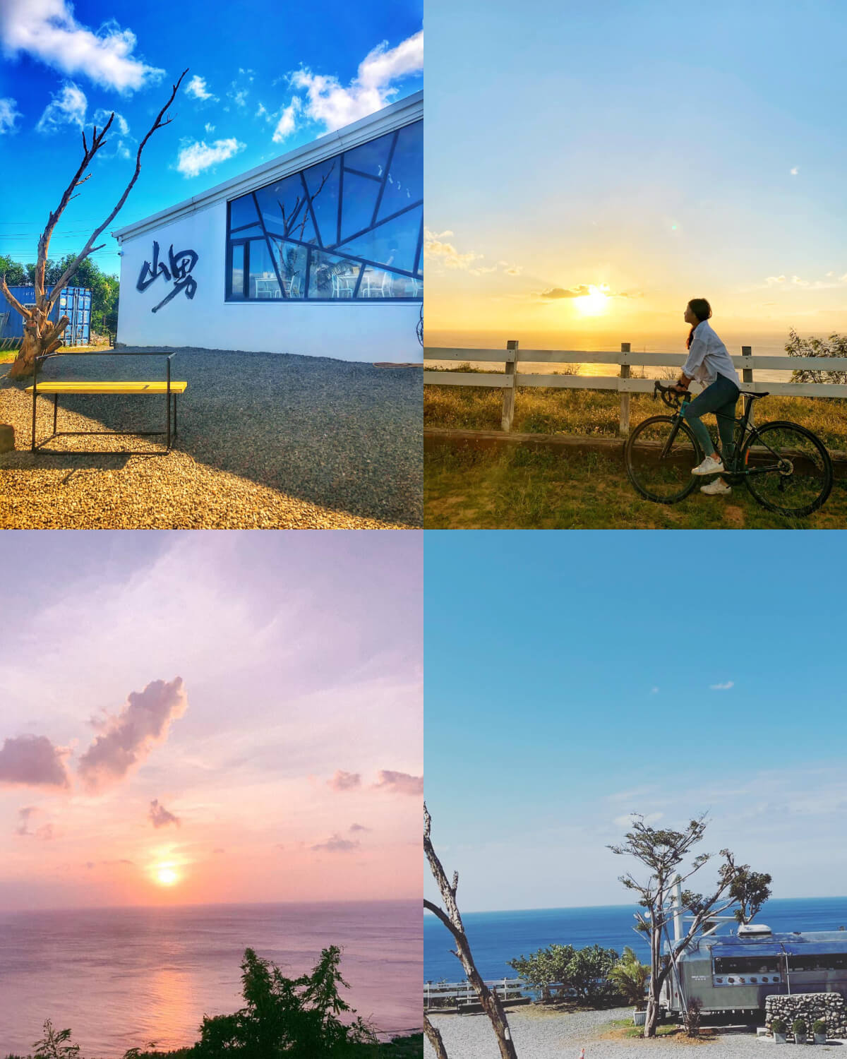 山男咖啡是在網路爆紅的海景咖啡廳,藍天白雲下的唯美白色玻璃屋,在遼闊的海景襯托下,顯得更清新高雅。佔地寬廣,無死角的海天絕景,庭院裡還有不少藝術裝置可以大拍美照,吸引著遊客特地驅車前來。熱氣正盛的酷夏,一杯冰涼的手沖咖啡,帶走黏膩暑氣 ,換來滿心清爽,這裡最美的是黃昏夕陽西下時分,你可以躺在庭院的吊床上,吹著海風靜賞那一抹金黃,非常愜意舒適。