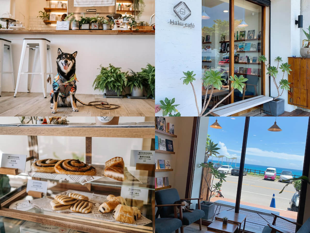 HAKU café 的位置在船帆石的對面,沒有明顯的招牌,簡約明亮的裝潢,文青風又充滿質感。這裡是寵物友善咖啡店,只要有牽繩毛孩就可以一同入店欣賞海景,店內還有隻叫阿財的店貓慵懶可愛而且不怕生,整體氛圍令人舒服自在。很推薦鬆餅系列、比薩跟乳酪蛋糕,好吃又好看,用料也很豐富。悠哉閒散的午後,一本書、一個人、一杯咖啡,再加上窗外的蔚藍海景,還有甚麼可奢求的呢?