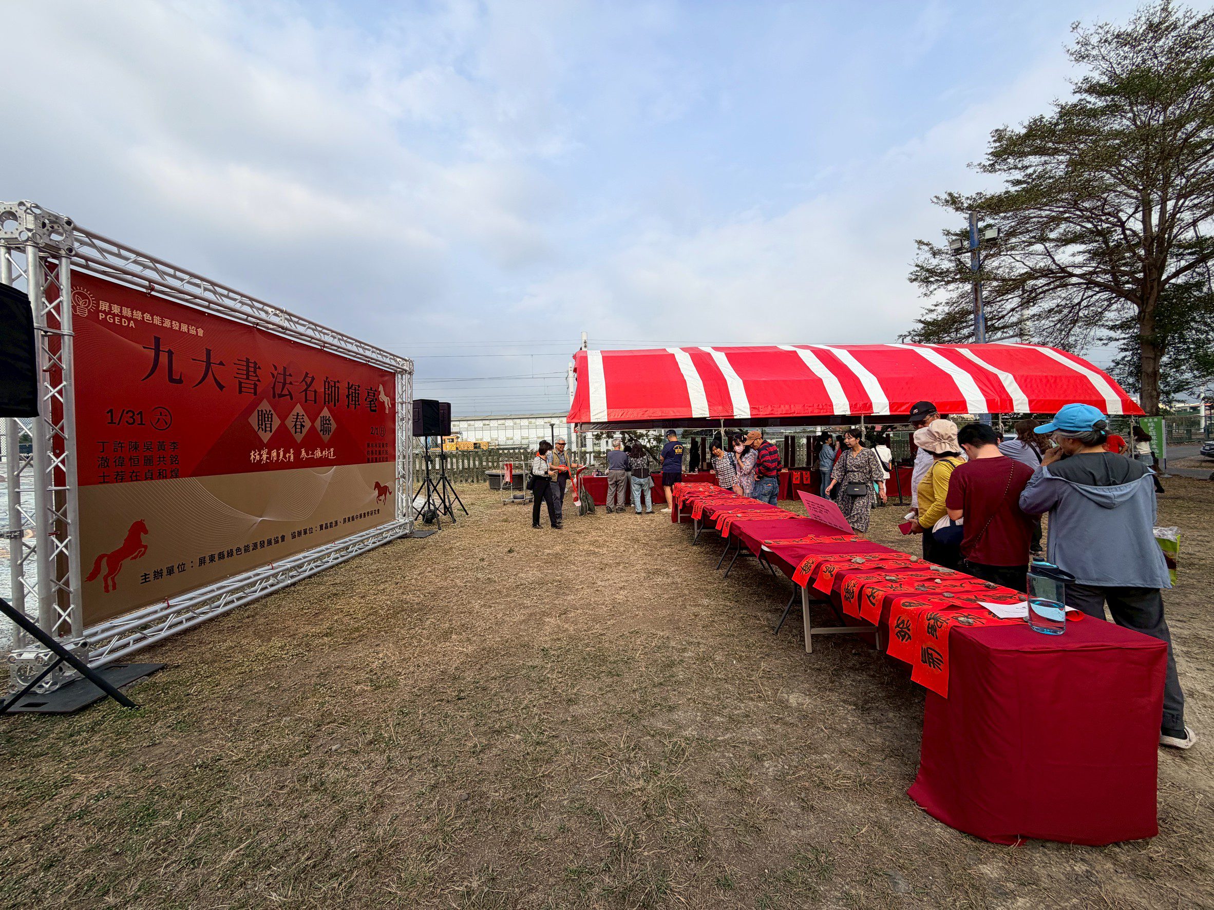 隨著農曆新春步步逼近,屏東枋寮鄉不僅迎來文化藝術活動的高峰,也在地方振興與節慶氣氛中,掀起一波別具特色的文化熱潮。由屏東縣綠色能源發展協會與屏東縣中華書學研究會 共同主辦的「枋寮用真、馬上擁好運」免費春聯致贈活動,於日前( 1 /31至2 /1)兩天在枋寮彩虹藝鐵 熱烈展開。活動不僅結合九位國內書法名家現場揮毫,也讓地方文化、綠色理念與鄉親新春祝福融合一氣,呈現出濃厚的文化喜氣與屏東鄉情的溫暖人情味。